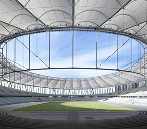 膜結(jié)構(gòu)建筑具有防噪功能很有必要,特別是在一些運(yùn)動(dòng)場(chǎng)膜結(jié)構(gòu),體育場(chǎng)膜結(jié)構(gòu),球場(chǎng)膜結(jié)構(gòu),廣場(chǎng)膜結(jié)構(gòu),舞臺(tái)膜結(jié)構(gòu)等。膜結(jié)構(gòu)建筑防噪功能的實(shí)現(xiàn)是通過膜結(jié)構(gòu)聲學(xué)設(shè)計(jì)集中圍繞兩方面的聲學(xué)品質(zhì)進(jìn)行。第一,如何屏蔽外部噪聲對(duì)建筑內(nèi)部的影響;第二,建筑內(nèi)部輪廓對(duì)回聲作用與混響時(shí)間影響。噪聲與回聲需要考慮的因素截然